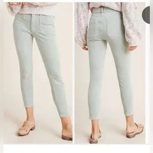 Anthropologie Pilcro and the Letterpress High Rise Skinny Ankle Pants in Brown Corduroy. Two front slip pockets. Two rear slip pockets. Button and zip fly closure. Belt loops. Skinny fit. Ankle length. Excellent preloved condition. Worn maybe 3 times. No flaws noted. Size 28.