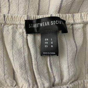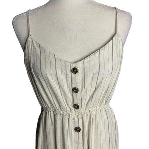 Streetwear Society Button Up Midi Dress L White Stripe Adjustable Straps Elastic