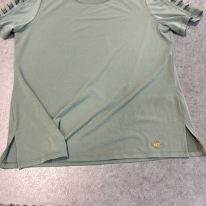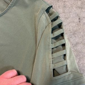 This is beautiful with just the tiniest amount of sheen and side slits at the bottom. From a smoke free and pet free