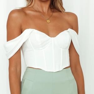 Hello Molly THIS MAGIC MOMENT CROP TOP in white. Size XS. Gently worn, good condition. Little to no signs of wear.