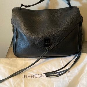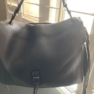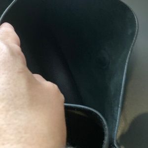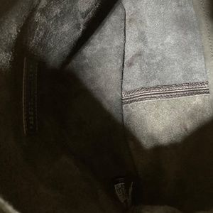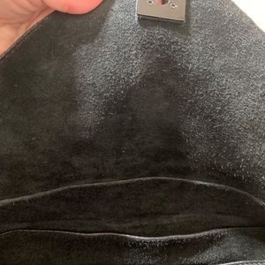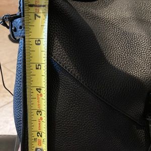 Black soft leather handbag. Not sure of name of this style. Comes with duster.
