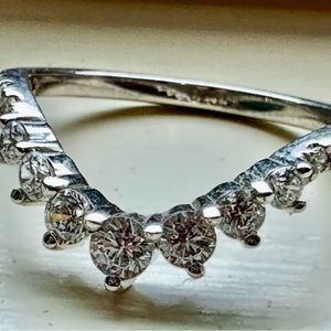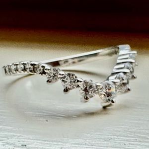 925 Sterling Silver Curved AAAAA CZ wedding Band, Size 7.