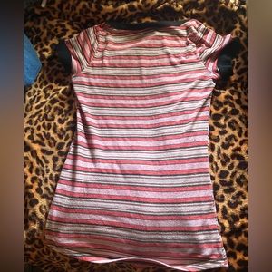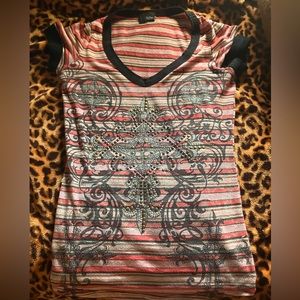 Pink and white striped Y2k baddazled short sleeve top