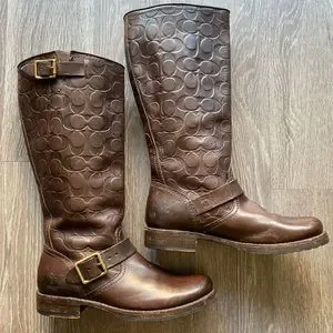 Part of our exclusive, limited edition collaboration with the Frye Company (est. 1863), the tall Veronica is a Frye favorite-a classic engineer style with adjustable straps. Frye customized this version for Coach with a metallic wash, our signature roller buckles and Signature C stamping on Frye's own vegetable-tanned Italian leather. Like all Frye boots, it was benchcrafted: hand-worked in a 190-step process using hand-cut leathers and hand-operated machines. Signature embossed stonewash leather. Rubber sole.