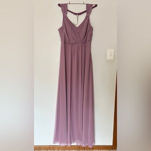 Color is a gorgeous mauve / purple / lavender color. The wedding colors were a navy and blush pink so this was the perfect compliment!