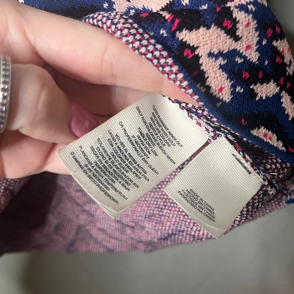 rachel roy mock neck shirt knit crop pink blue black white short sleeved print S