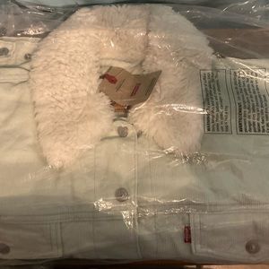 Levi’s women’s Sherpa collar baby cropped trucker jacket size XL in Meadow Mist (light Mint color) New with tags.