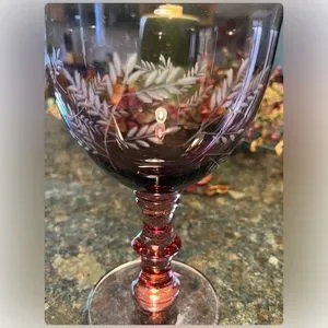 Vintage-Set of Three Purple Wheat Etched Wine/Water Goblets.