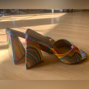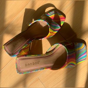 NWOT Bamboo Disco Rainbow Tie Dye Heels