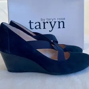 Taryn Rose navy suede wedge
