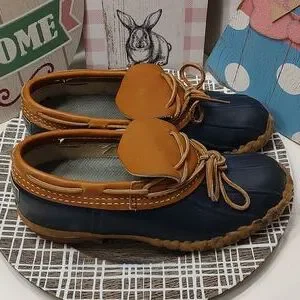 💐 Vintage GUC L.L. Bean Bean Boot 🥾 Rubber Duck Boots, Leather Trim, Navy, 8