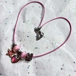 NEW PINK HEART STARFISH & BUTTERFLIES CHARM NECKLACE MADE WITH PINK CORD