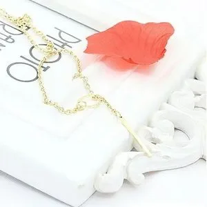 NEW Dainty 18K Stainless Steel Cylindrical And Bar Y Necklace