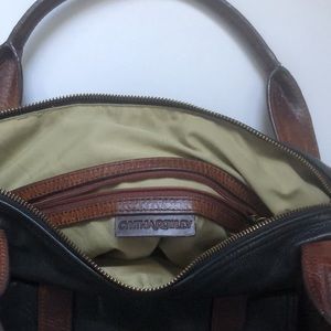 Roomy leather handbag, worn with no scratches or rips. Outside and inside pockets. Missing shoulder strap