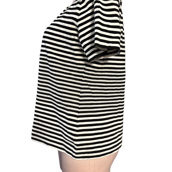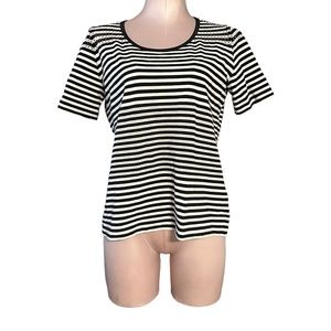 AKRIS Punto black and white striped top size 14. EUC. Beautiful see through detail. Absolutely beautiful. ATQ