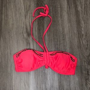 OCEAN PACIFIC Women's Pink/Black Sequin Trim Halter Bikini Swim Top sz Jr's S