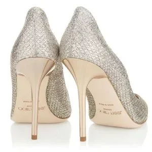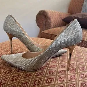 Jimmy Choo champagne glitter stilettos, sz 39,5