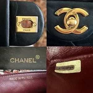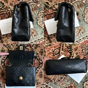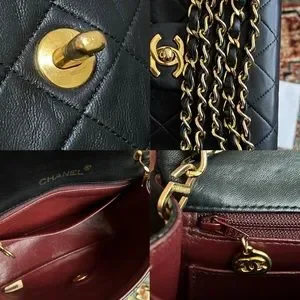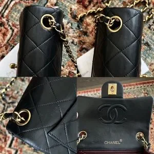 100% Authentic Chanel Vintage Classic Mini Square Flap Bag Black Lambskin with 24K Gold Plated Hardware