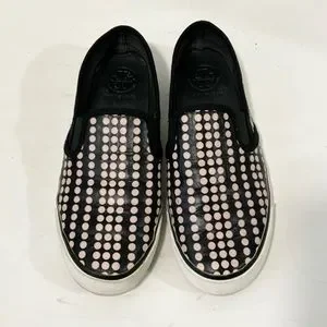 Tory Burch Women’s Pink And Black Polka Dot Leather Slip On Sneakers Size 7.