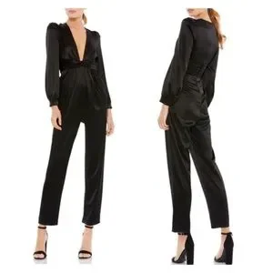 IEENA FOR MAC DUGGAL Evening Ruched Plunging Neck Jumpsuit Black 12 NWOT NEW