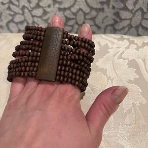 NWOT multi-beaded brown wood stretchy bracelet.