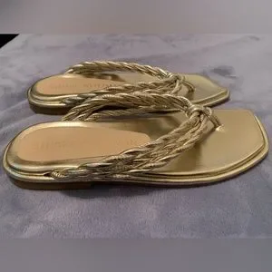 Stuart Weitzman Women’s Metallic Woven| Gold| Calypso Flat Sandals| Size 8 1/2