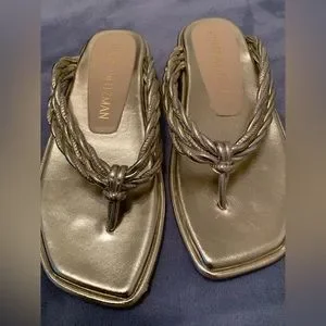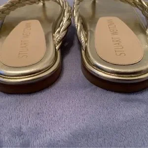 Stuart Weitzman Women’s Metallic Napa Woven Calypso Flat Sandals| size 8 1/2