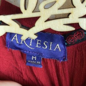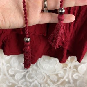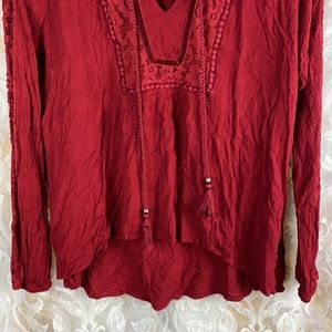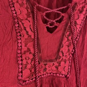 Artesia Size Medium Boho Peasant wine Red Lace sleeves tie string lace up long sleeve blouse