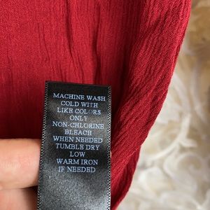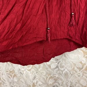 Artesia Boho Chic Peasant Blouse Red Lace trim lace up long sleeve shirt Medium
