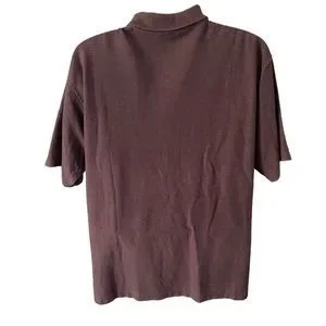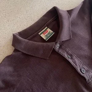 Plum coloured 3 button short sleeved 100% cotton shirt with folded collar. Very comfy and stylish as Levi’s is known for. The middle button is different and I believe it is a replacement and not the original, see pic.