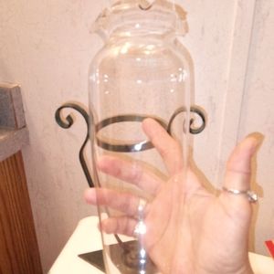 This group has 3 items starting with that beautiful and unique hand Crafted wrought iron floating vase. the holder is dark green wrought iron with a blown glass floating vase insert with ruffled edge. this is so striking. With it is a gorgeous little ceramic trinket dish hand painted with a hummingbird and flowers. The 3rd item is a pretty ceramic oil/wax warmer that uses a tealite candle. It has a beautiful cutout botanical design. all are in excellent condition.