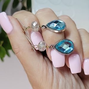 Czech Glass and Aqua Crystal Teardrop Earrings