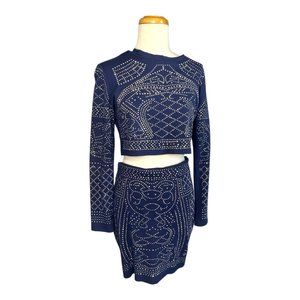 Mea Meor 2 Piece Studded Skirt Set Blue Size M EUC