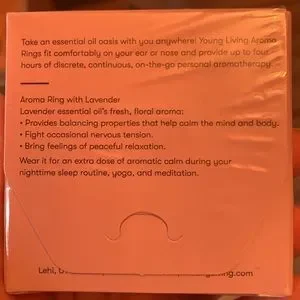 From the box: Take an essential oil oasis with you anywhere. Young Living aroma rings fit comfortably on your ear or nose and provide up to four hours of discreet, continuous, on-the-go personal aromatherapy.