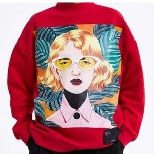 Zara Bijou Karman Red Graphic Capsule Women In Art Collection Pullover Size Small