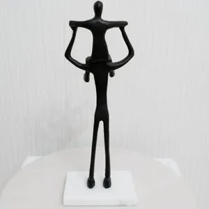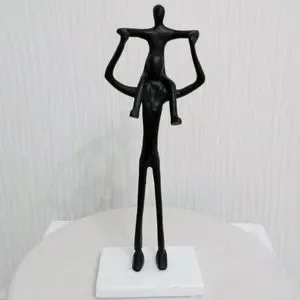 Handcrafted Father and Child on Shoulders Metal Sculpture Figurine on MarbleBase
