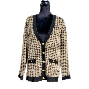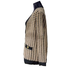 Tahari Womens Brown & Tan Houndstooth Eyelash Cozy Stretch Cardigan Sz S