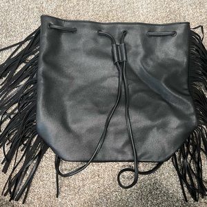 Victoria's Secret Faux Leather black fringe bucket backpack