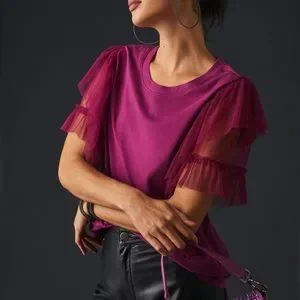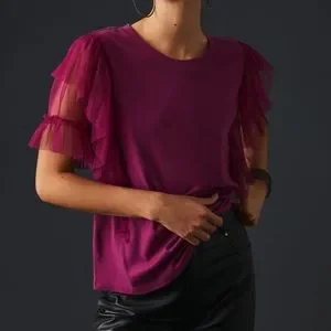 Anthropologie Pilcro Tulle Mesh Tee in Raspberry