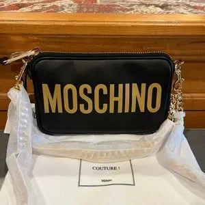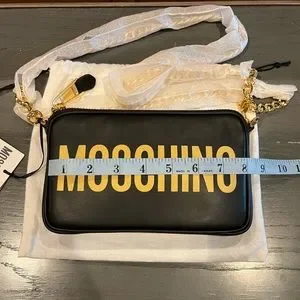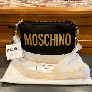NWT Moschino Logo-print Zipped Chain Shoulder Bag.