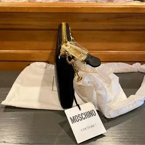 NWT Moschino Logo-print Zipped Chain Shoulder Bag