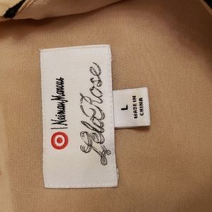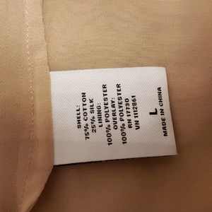Taupe sleeveless top with black lace overlay. Silk and cotton outer layer with polyester lining. Like new.