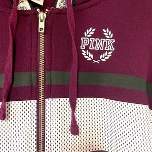 VS Pink maroon black and white hooded jacket, sz L