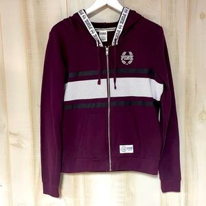 VS Pink Maroon Black And White Zip Up Hooded Jacket Sz L