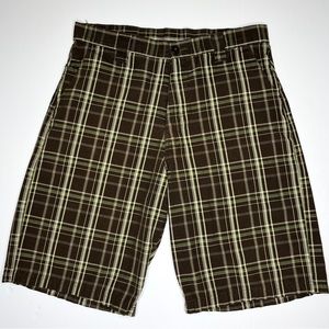 Burnside Brown Plaid Shorts Size 32 Mens Bermuda Belt Loop Preppy Flat Front