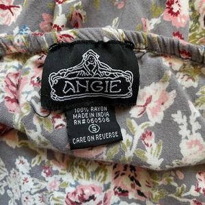 Romper Halter Top S Angie Gray Grey Floral Pockets Shirred Back Light Weight