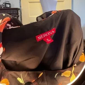 Target Merona Black Floral Sleeveless Dress with Ruffles. Black with orange, green, mustard yellow floral pattern. Size 16. Approximate measurements 21" armpit to armpit 21" waist 38" shoulder to hem 100% polyester. Small tear up by the collar. Target 01323968 F16751289 Q1/12. Has pockets.