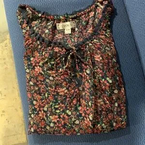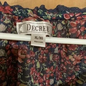 Decree sheer blouse. Size extra large ties at neck with lace trim. 100% polyester measurements in photos. Fitted at the bottom. NWOT