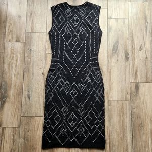 Size Medium RVN sleeveless bodycon black and silver dress. Geometric design. Sweater-like material. Has some stretch to it.