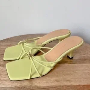 I love these Dear Frances Fan sandals in the color Apple, a light yellow/green color. I also have them in the color Saddle, so I am selling these. Purchased from Dear Frances. Comes with box and bag/original packaging. They are sold out in the website. Very quality, comfortable, classy, and sexy.